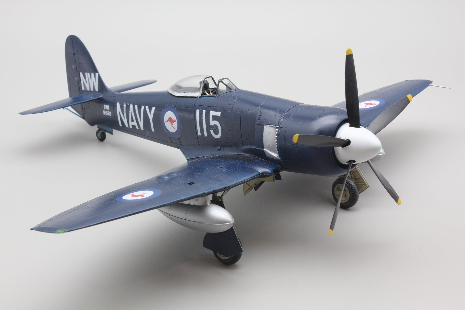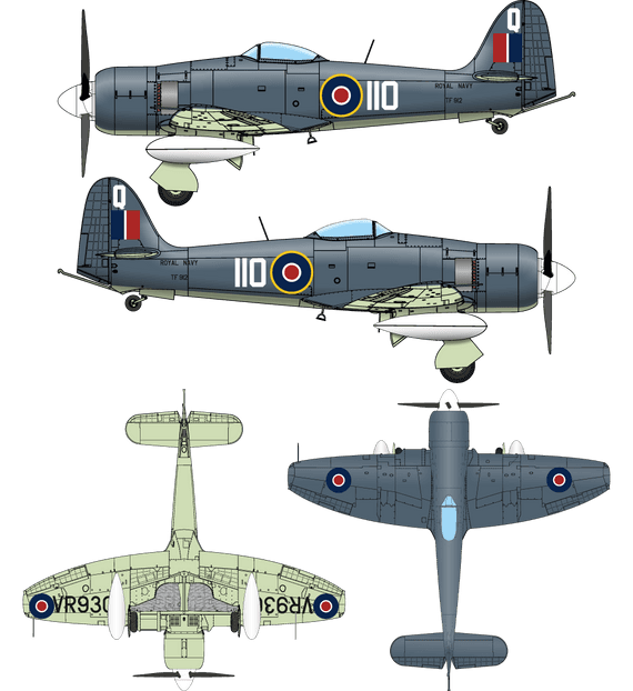 The Hawker Sea Fury was the last of the great line of fighters/fighter bombers from the Hawker company and represented the pinnacle of piston engineering. One of the fastest production piston engine aircraft ever produced, the Hawker Sea Fury made it's debut shortly after WWII an d just at the beginning of the jet age. It gave sterling service in the Korean conflict where it was credited with the shooting down of a Mig 15 jet fighter. We maintain both a flying T20 (2 seat version) and an FBII in our hangar at RNAS Yeovilton.